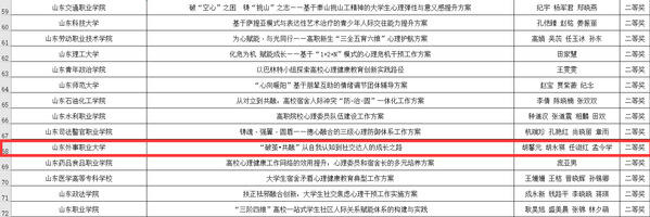 在心理健康教育典型工作方案评选中,《“破茧・共融”:从自我认知到社交达人的成长之路》(作者:胡馨元、胡永祺、任淑红、孟令学)获二等奖,《高职新生心理测评及危机筛查创新模式应用》(作者:任淑红、邹丽君、胡馨元、胡永祺)获三等奖。